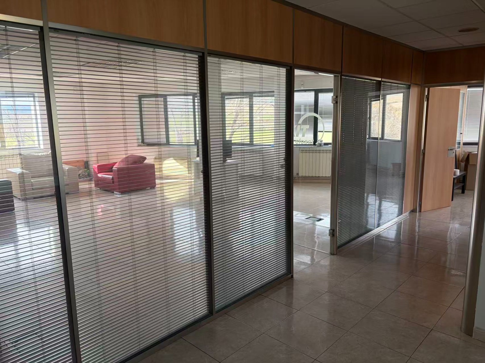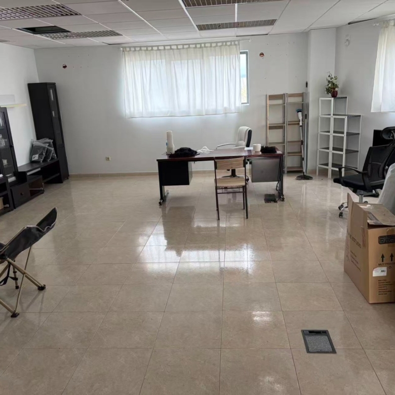 El edificio de oficinas se distribuye en dos plantas, con sala de juntas, zona de administración, 4 despachos, zona bar/descanso, exposición y aseos en ambas plantas.