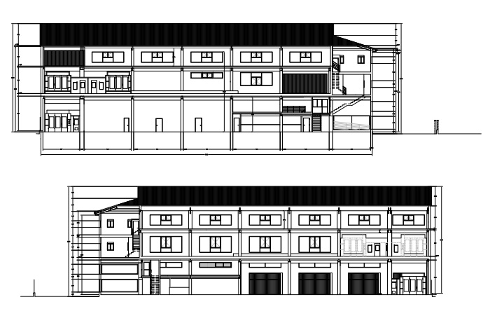 La nave está distribuida en 4 plantas. Todas las plantas tienen acceso para vehículos con rampa exterior.